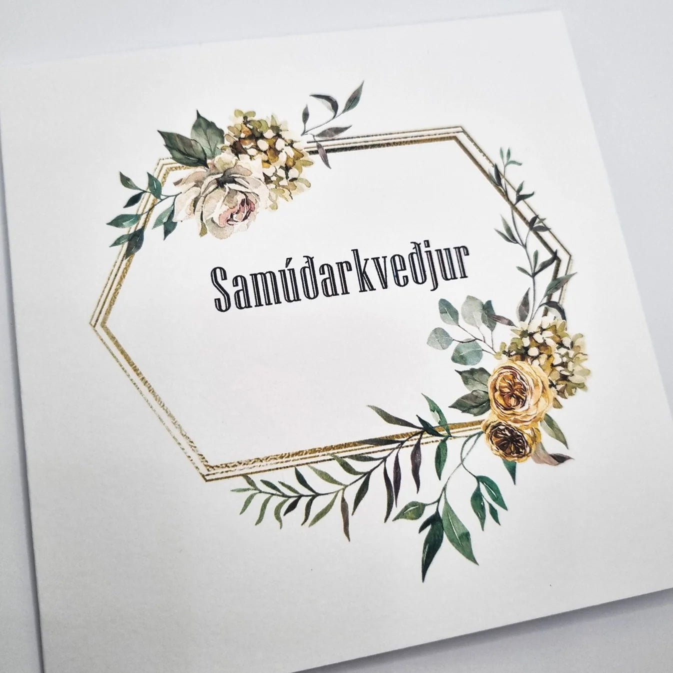 Fallegt kort úr vönduðum pappír, kemur með umslagi.