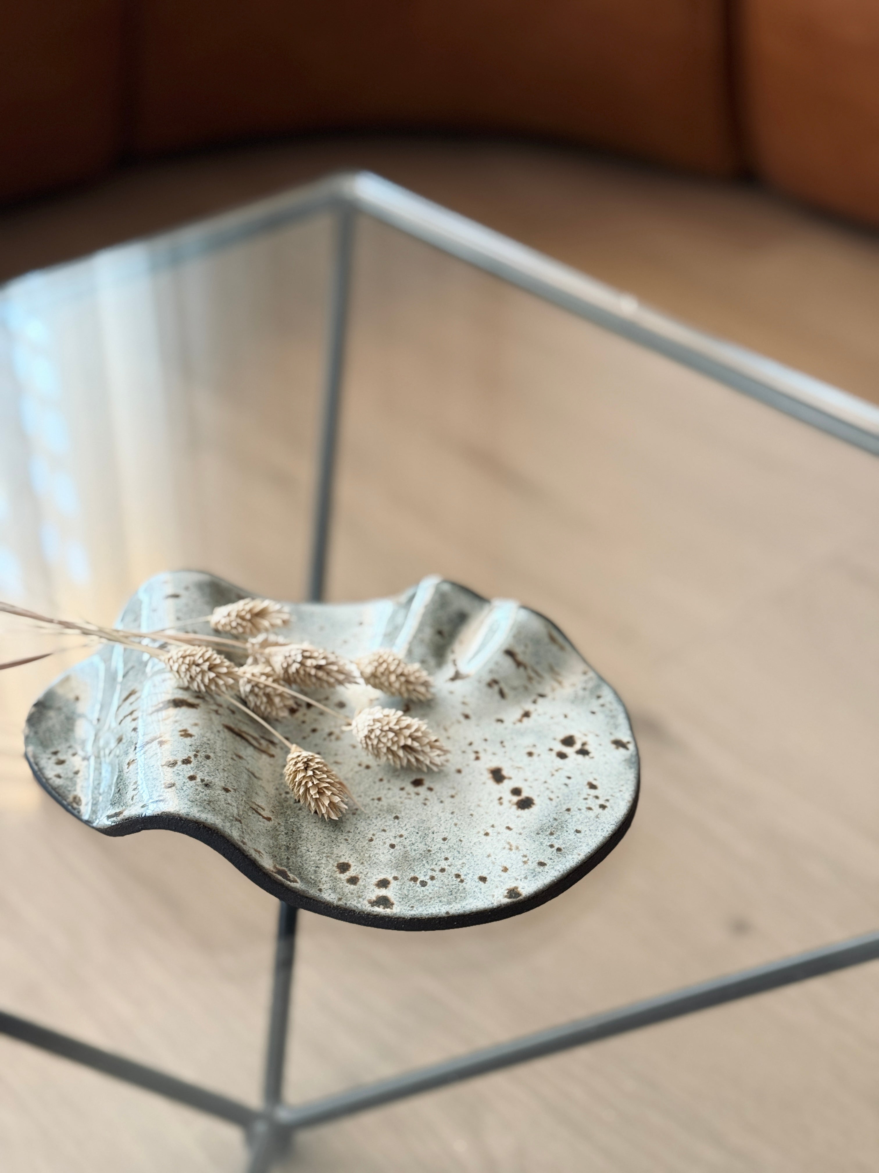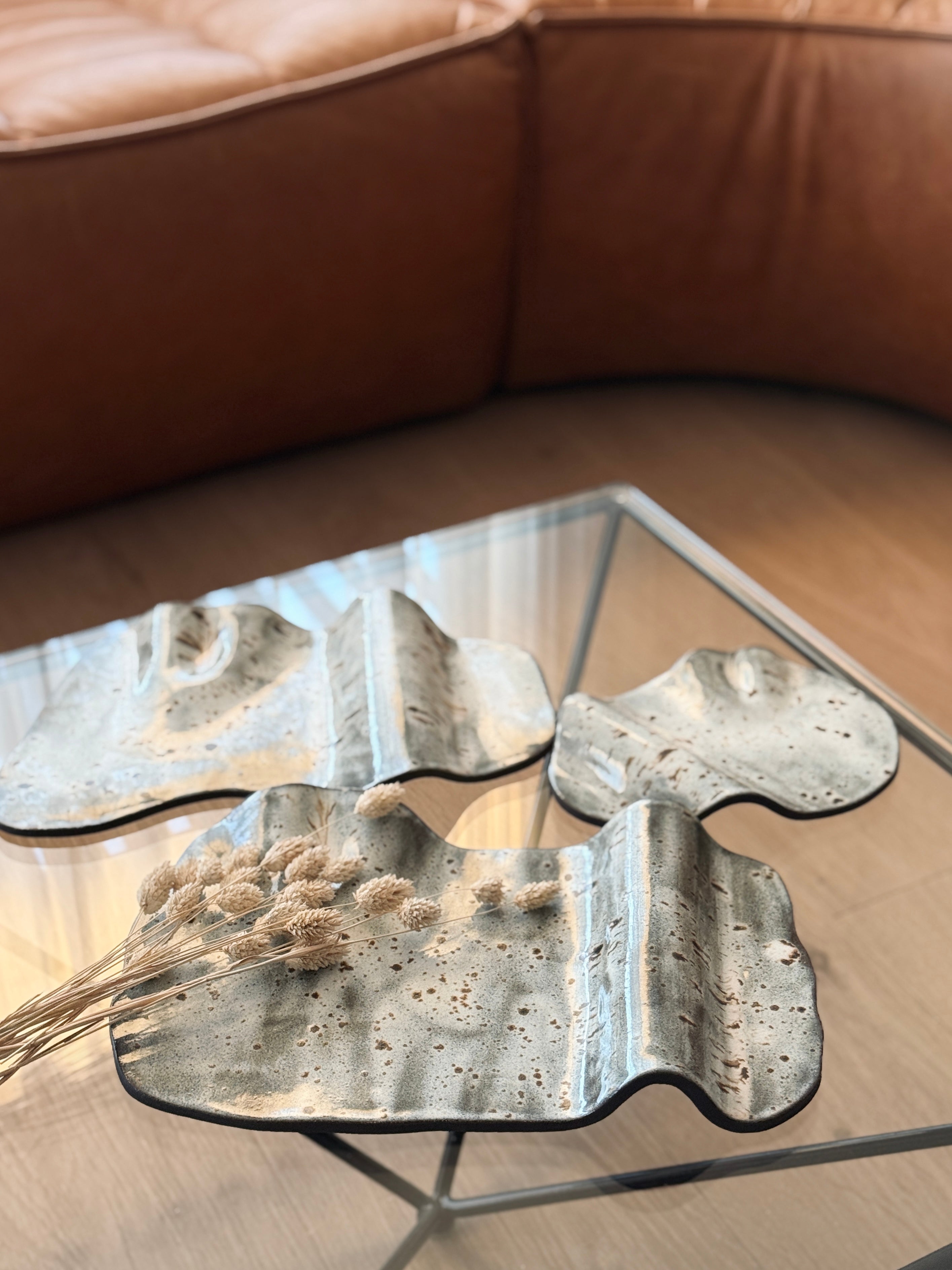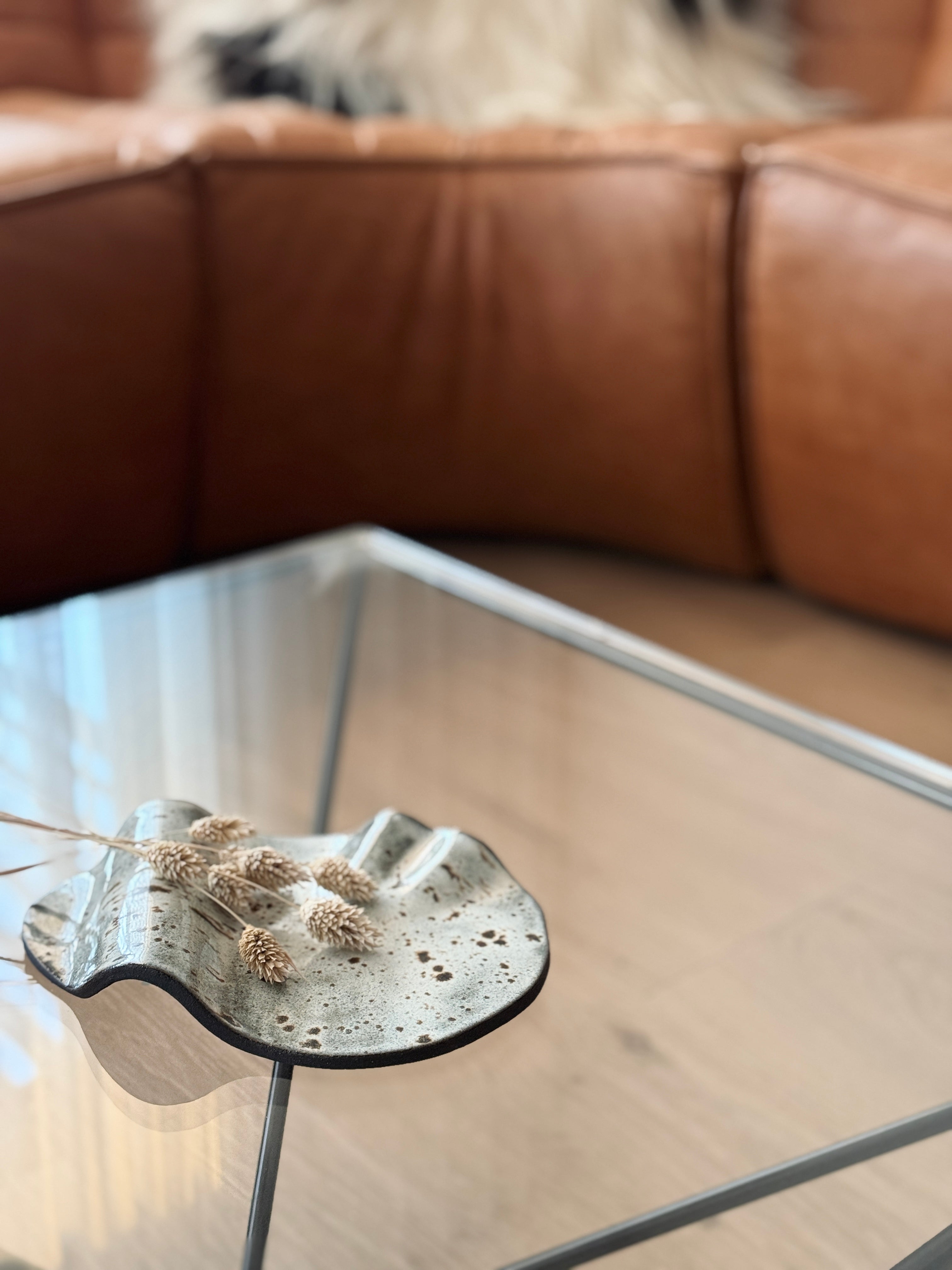 Hver bakki er handmótaður úr hágæða steinleir með glerjuðu náttúrulegu yfirborði sem