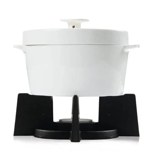 Potturinn er úr keramik og með fylgir standur úr steypujárni, kerti og uppskriftir.