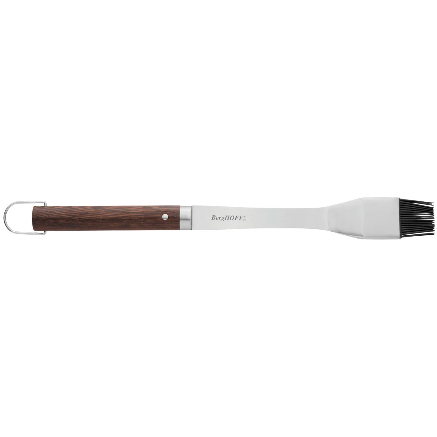 Fjölhæfur og endingargóður bursti með sílikónpensli. Ryðfrítt stálskaft sem að hluta til er með viðarhandfangi sem tryggir öruggt grip, með hanka fyrir þægilega geymslu.