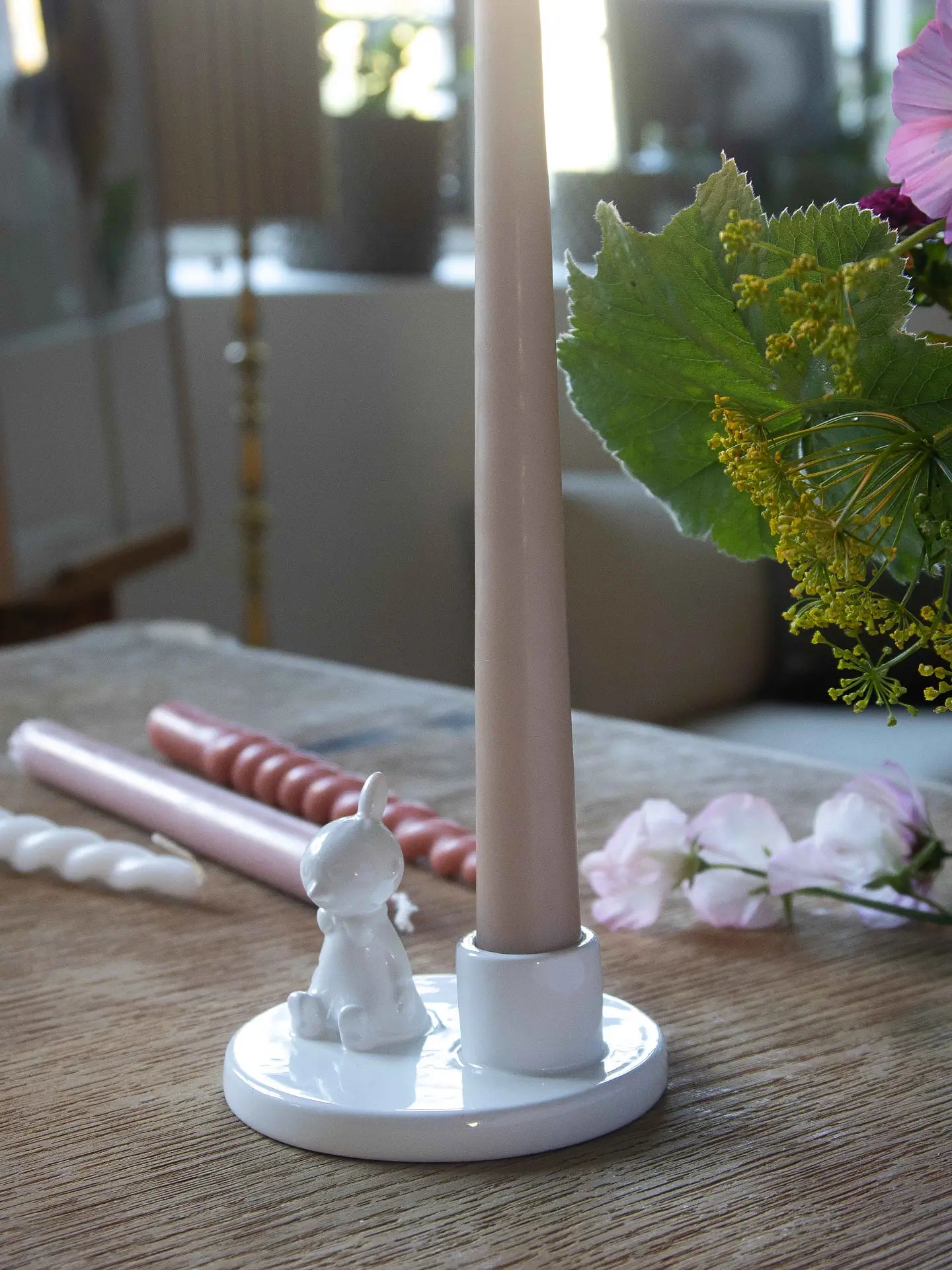 Fallegur hvítur keramik kertastjaki skreyttur með Miu. Fullkominn fyrir kósýkvöldið og tilvalinn fyrir alla sem vilja safna þessum ástsælu karakterum.