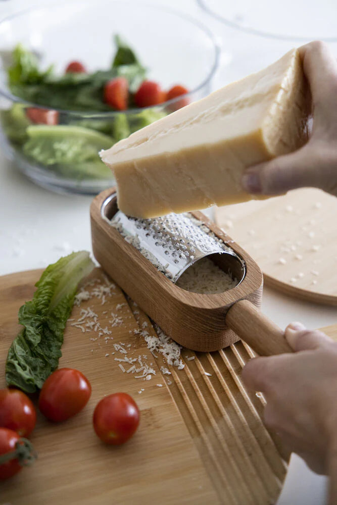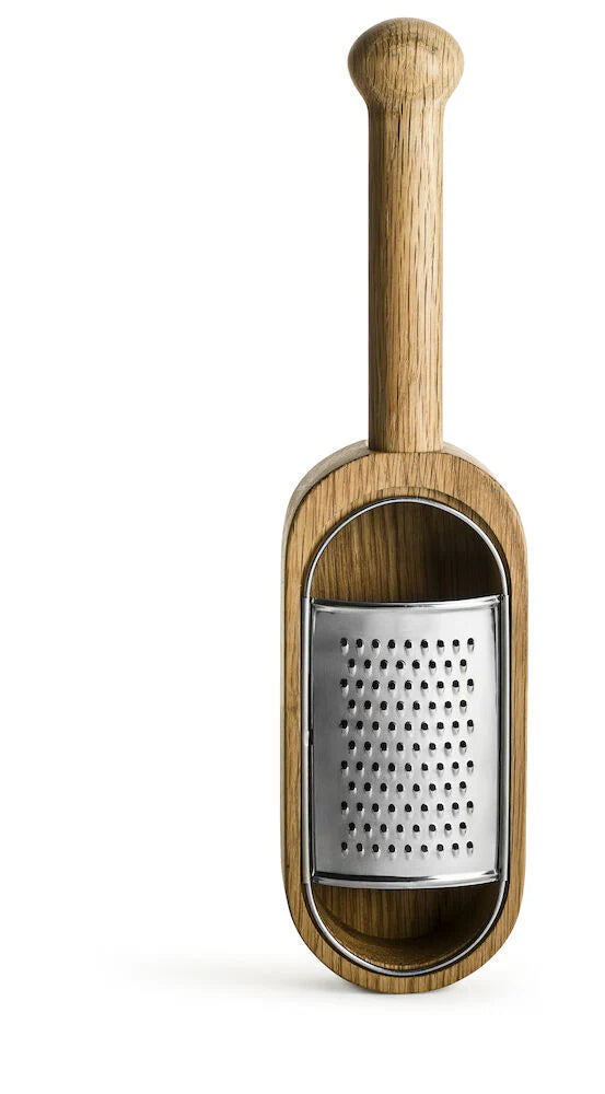 Vandað og fallegt rifjárn sem sameinar ryðfrítt stál og gegnheila eik í hönnun sem er bæði nytsamleg og glæsileg. Tilvalið fyrir parmesan og aðra harða osta.