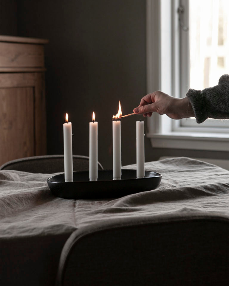 Kertastjaki úr keramik fyrir fjögur kerti í röð.