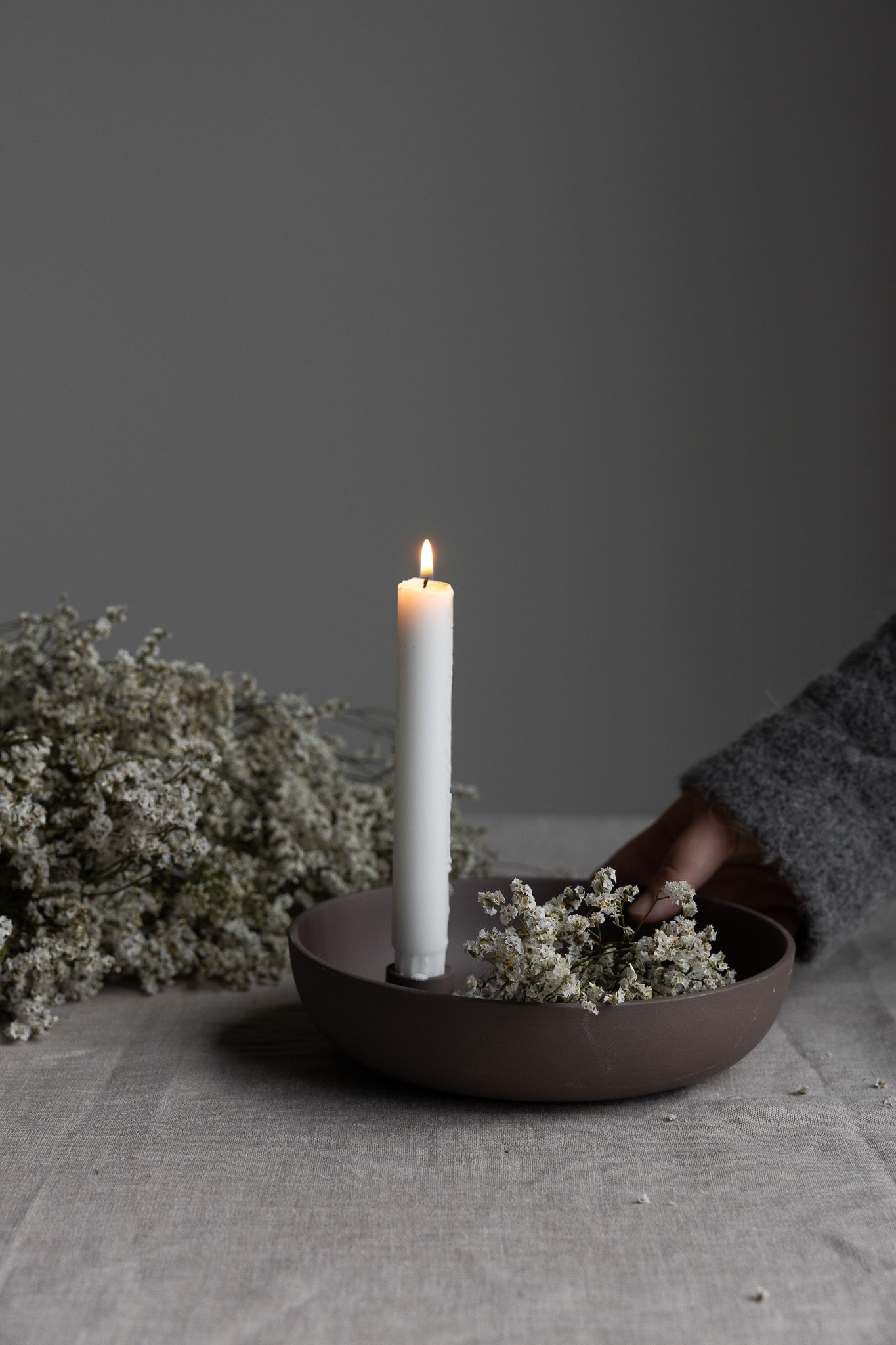 LIDATORP er fallegur og margnota kertastjaki úr keramik. Miðjan heldur utan um kertið, en kringum það er skál sem hægt er að nýta á marga vegu. Þú getur skreytt hann eftir árstíðum og tilefnum – með blómum, greinum eða einfaldlega haft hann eins og hann er. Einnig má nota hann undir sætindi, hnetur, ávexti eða aðra smáhluti.