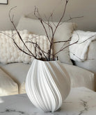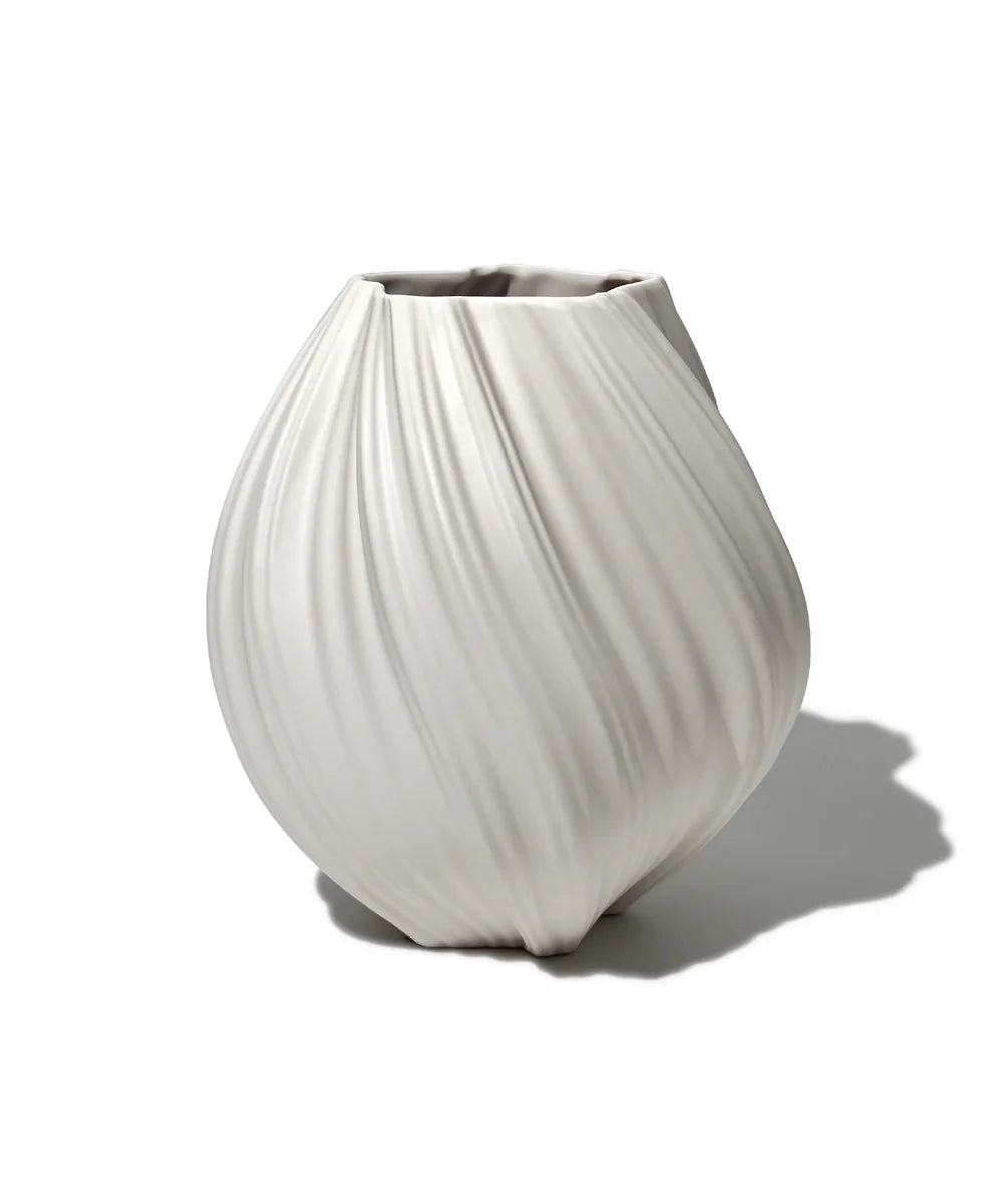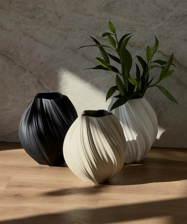 Tímalaus hönnun og náttúruleg fágun sameinast í þessum einstaka keramikvasa. Mjúkar línur og skúlptúrkennt form gera hann að listmun sem fangar augað – hvort sem hann stendur einn og sér eða með blómaskreytingu.